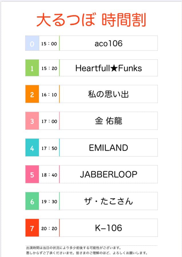 タイムテーブルは下記となります!当日券もございますので、ぜひお越しください!